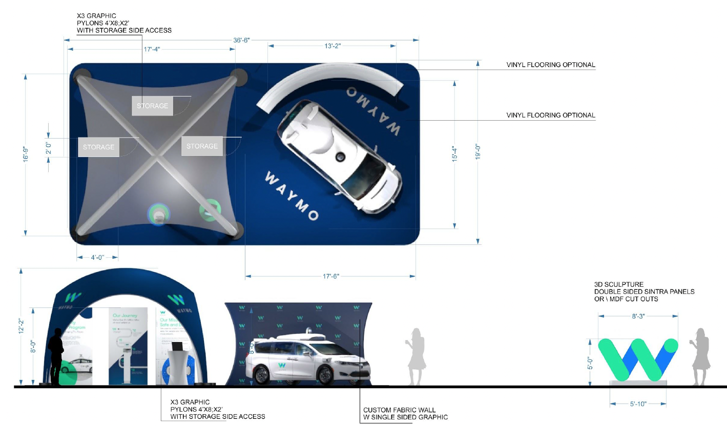 To engage early adopters and skeptics alike, we concepted and designed a series of modular, transportable installations and field assets that brought Waymo’s vision directly to communities. These experiences needed to be impactful yet agile—easily deployed across multiple U.S. cities while maintaining Alphabet’s brand consistency. The goal was to create immersive, educational, and hands-on encounters that allowed the public to engage with Waymo’s technology in an intuitive, reassuring way.